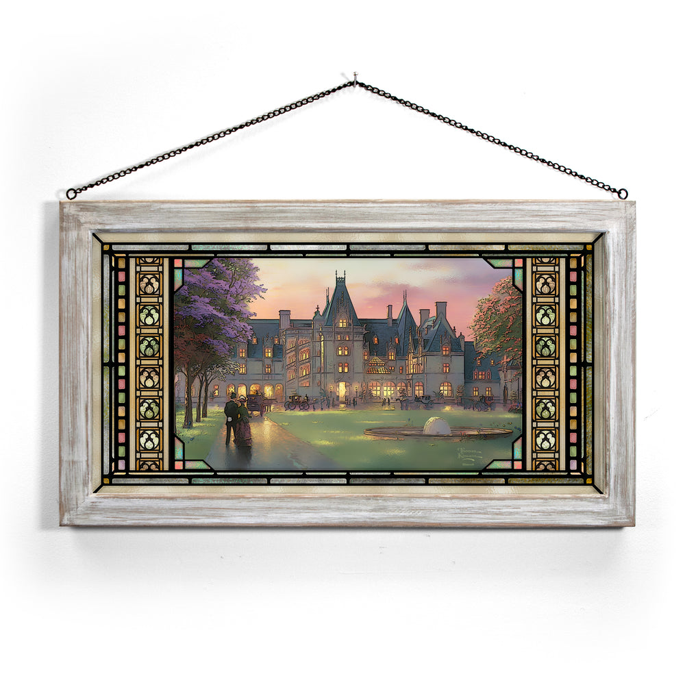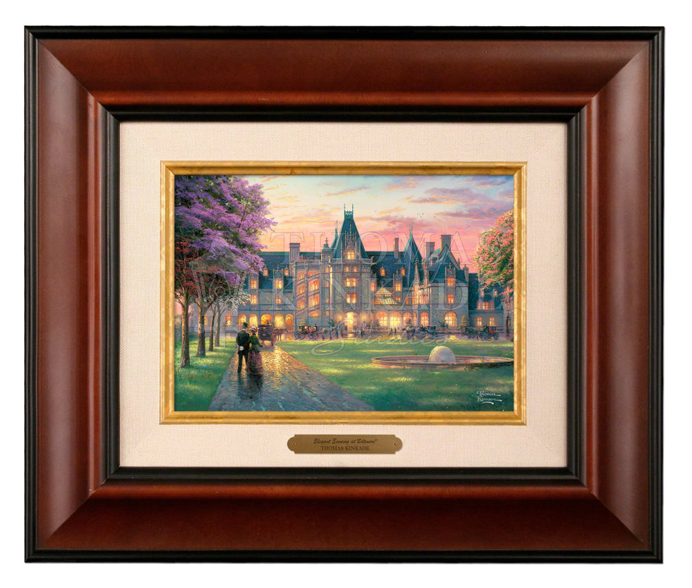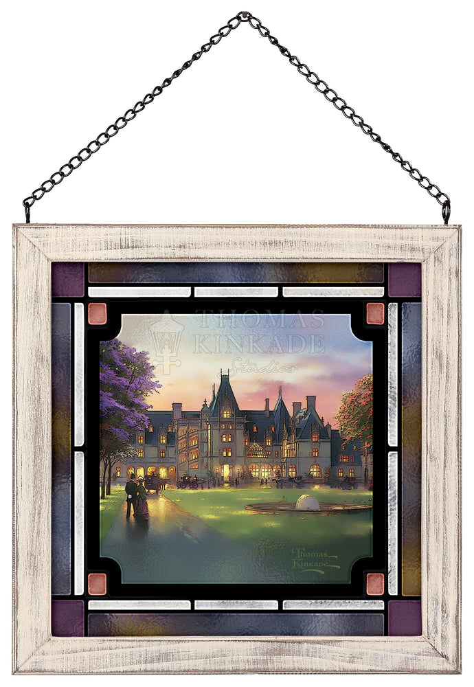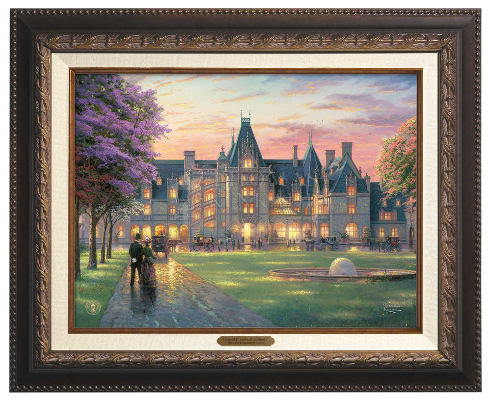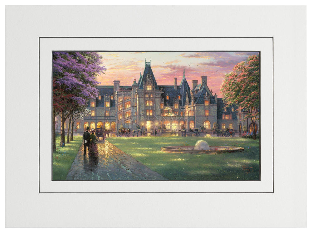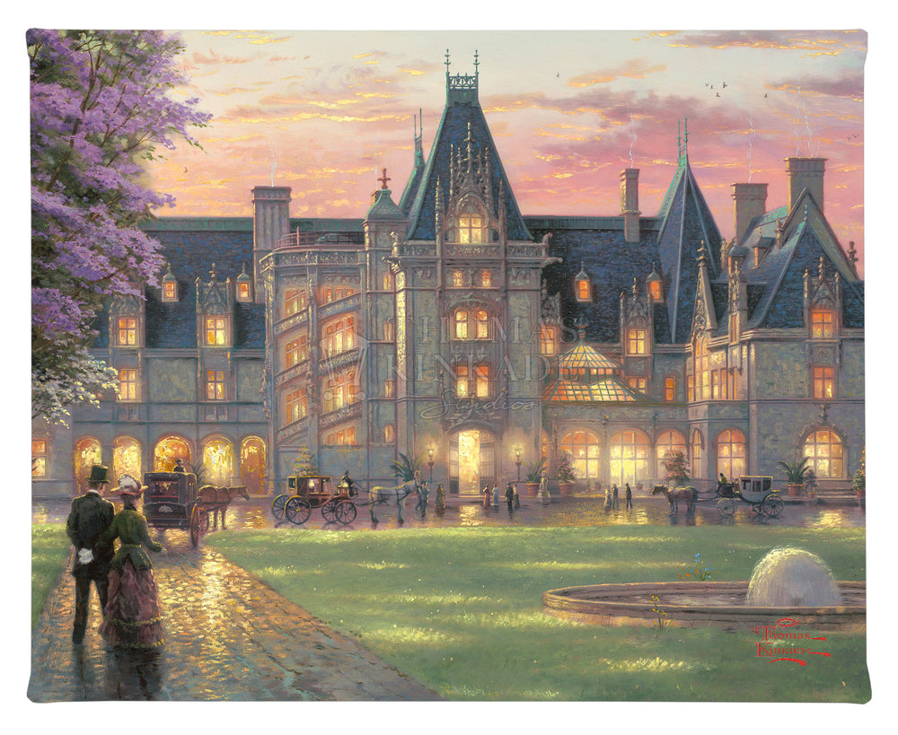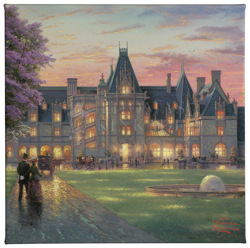 My challenge in painting Elegant Evening at Biltmore ® was not to convey the heroic scale of this fairy-tale castle, but to make it warmly personal. I utilized glittering lights to suggest a festive evening affair in progress. I invite you to climb aboard your elegant coach and join the celebration.